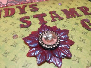 Then I painted some letters with Extreme Glitter Acrylic paint and the same Magical Mica’s. I embossed some Iamroses petals with Royal Burgundy Blue 2 toned embossing powder and added a beautiful center.