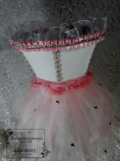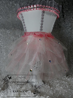 This was such a fun project to do. I bought a plain black lamp and altered it to match my scraproom. I call this my “Ballerina Lamp” Something you might notice right away is the lamp shade is upside down! It looks more like a body shape this way and was perfect for a tutu! I alternated pleating white tulle and pink organza from about 2/3’s of the way up to the top (right side up) then once I had all the tulle and organza on I flipped it over which which made the tutu fluffy. I painted the base of the lamp with white acrylic paint (2 coats) then I sanded along some of the raised edges and added rub”n”buff.