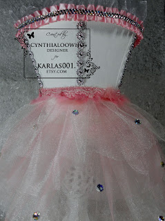 Then I added some beautiful Websters Pages Fancy Feather trim available @ Karlas001 Etsy Store. I then added some beautiful Pink Trim-3 along the top, some recollections sticky back bling, and some beautiful Silver Flower Trim! Here are more photo’s!