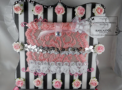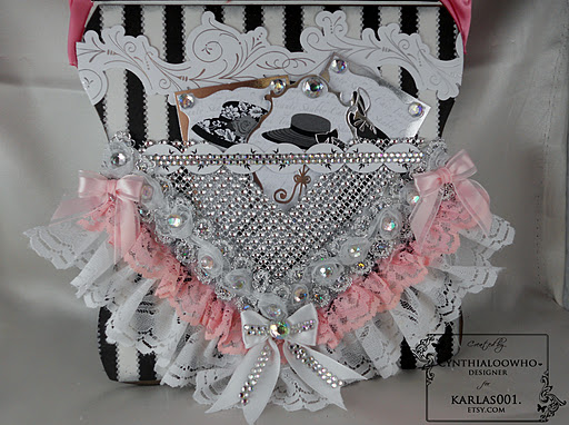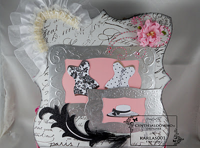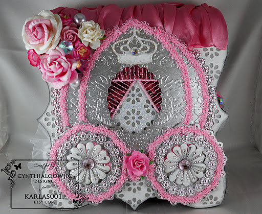 Here is a Princess Carriage Album I made using many different papers. I made my own template and only used pink, black, white, & silver colors! I also used some beautiful many beautiful KARLAS001 items!