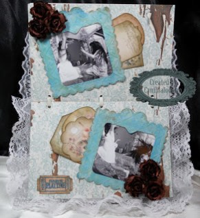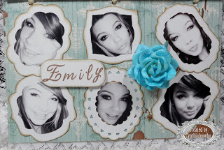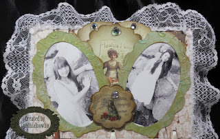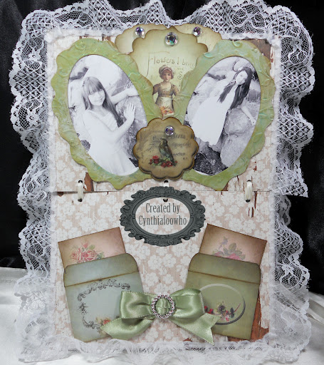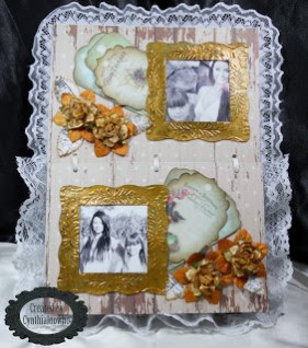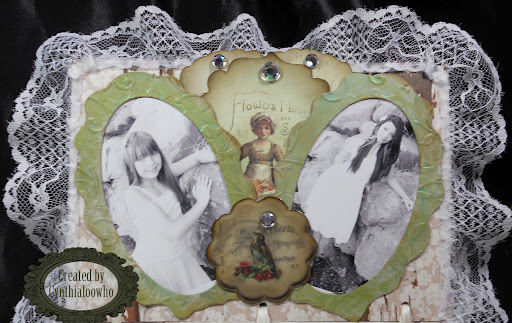I added some beautiful laces and trims, Karlas001 product’s, Lindy’s Stamp Gang sprays, and I Am Roses flowers. Then to finish the project I filled it with photos of my 2 beautiful daughters Emily and Aubrey.