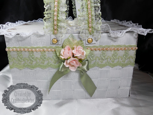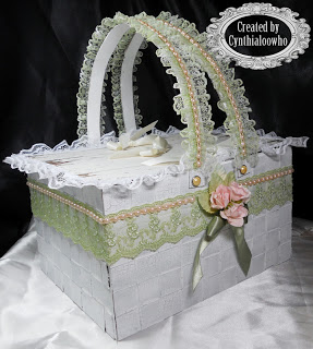 I made the basket from weaving chipboard and then using a crackle paint technique to make it look shabby. I used the Shabby Chic Collection from FabScraps for the album. I distressed all the photo frames and used some beautiful shabby chic tags from a free download I found on Pinterest.