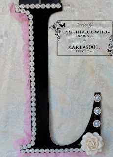 This was a very fun project and one I’ve planned since I found out my grand daughter is a girl! The letters are from a chipboard letter set. I used the Teresa Collins “Timeless” collection. I used some beautiful embellishments from KARLAS001’s etsy.