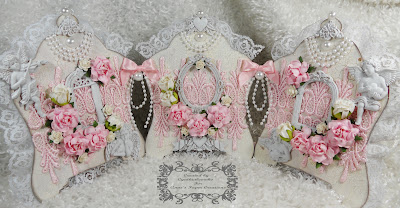 I used Prima’s Romance Novel collection, beautiful lace colored with Lindy’s Stamp Gang’s Midnight Rendezvous Raven Starburst Spray, R-77, R-6, & T30-151 Roses from I Am Roses, I also added some grey flat back pearls around the edges.