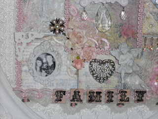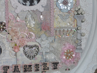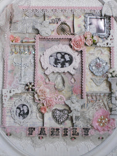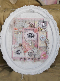 Now for my project, this was so fun to make. I used many clay pieces, Prima Shabby Treasures, trims, frames, Lindy’s Stamp Gang, Romance Novel paper collection, stamps, I Am Roses, and other embellishments.
