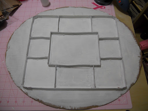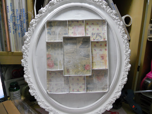 I painted the frame white, cut out some cardboard and added some chipboard to create the printers tray.