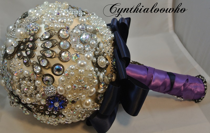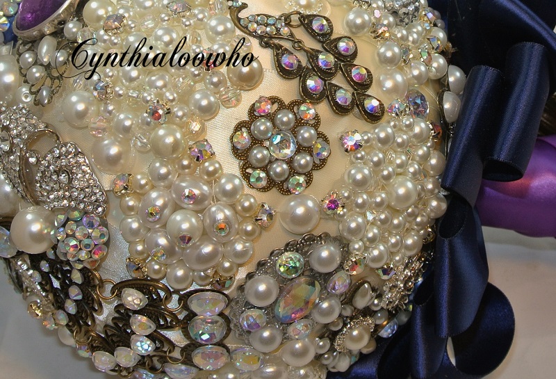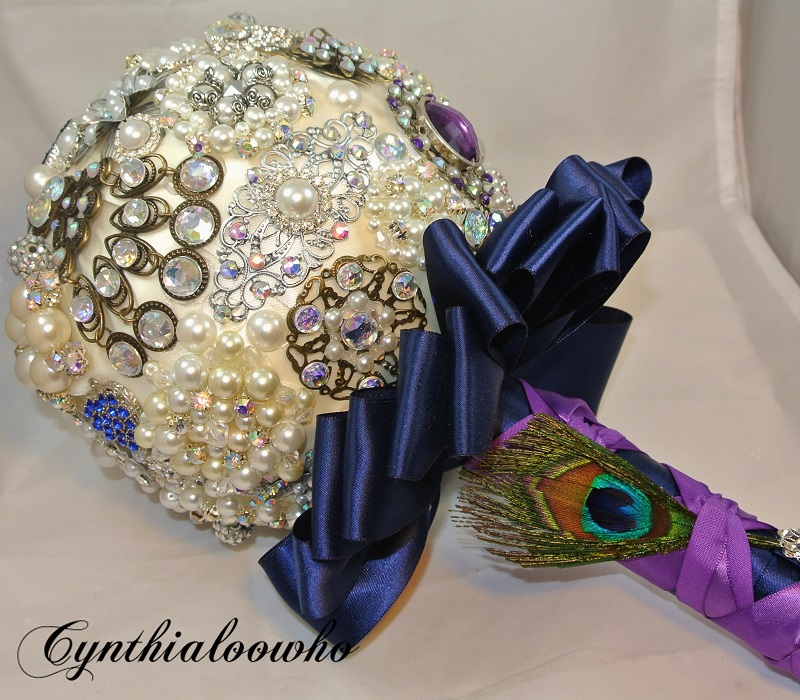 Here is another brooch bouquet. I had a lot of fun making this but it was quite time consuming because I made all but 3 brooches. I made this for my niece and her theme is peacock. I didn’t want to overload the bouquet with color so I just added bits here and there. Here are some photos.