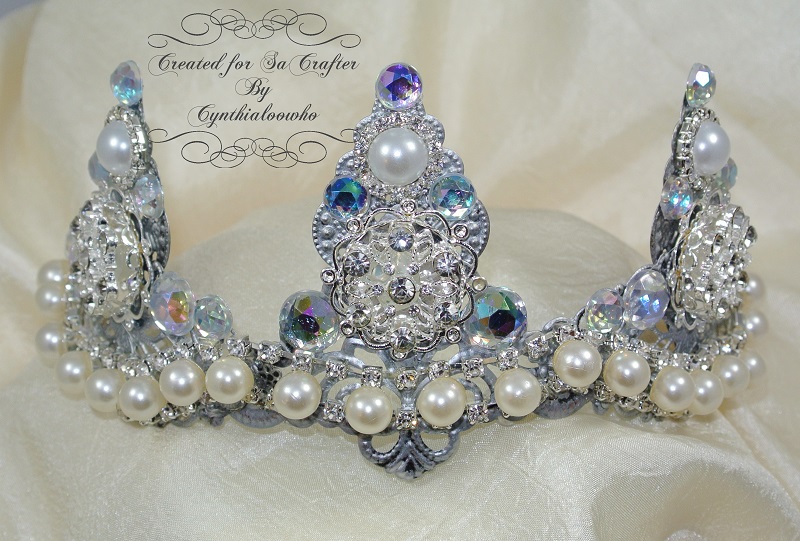 I also made a tiara and have a fast play video tutorial I will link below. I started with a headband and some filigrees I painted with silver metal mixatives, then I added embellishments and it was done!