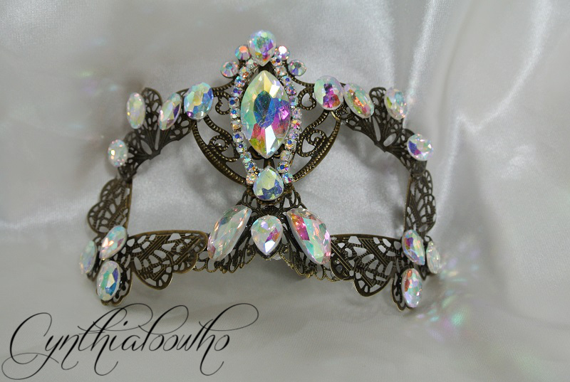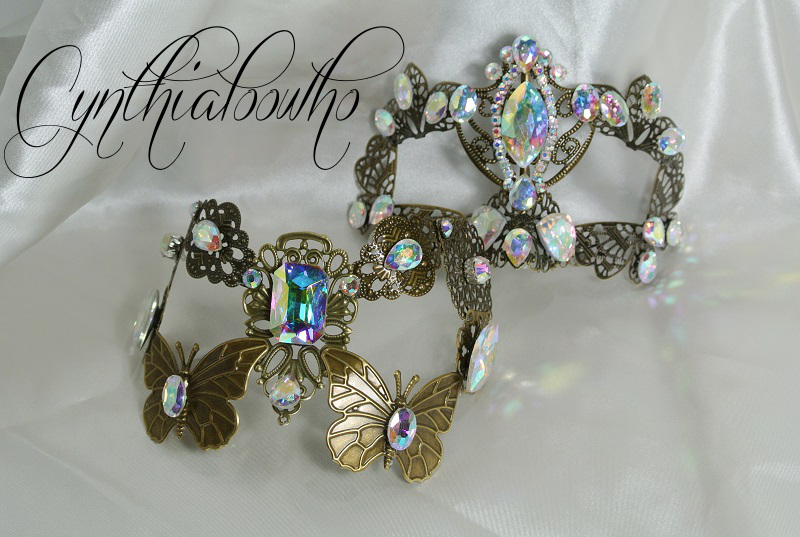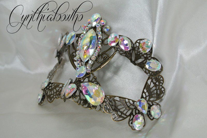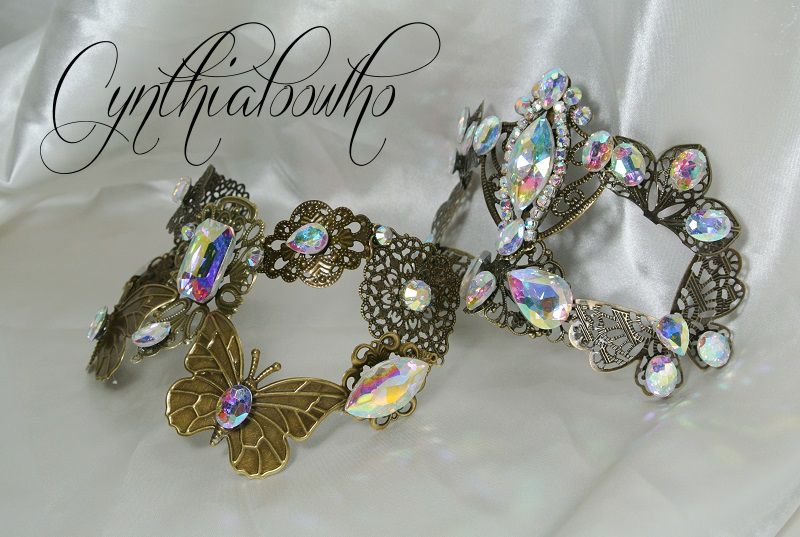 What a great way to spend my peaceful morning making masquerade masks. There are so many things you can do with filigrees this is just one of them. I chose the filigrees I thought would make a great mask and just started molding and shaping them to fit my face. The great thing about these masks is they fit my face perfect unlike the standard mask you find at the craft store. I cleaned them very well since they will be on my face and that also helps hot glue to hold up very well. I only used hot glue on these masks and it worked great. I added some crystals and rhinestones for that sparkle I love and that’s it. These were fun, easy, and quick. To see a video tutorial on the Butterfly mask scroll down.
